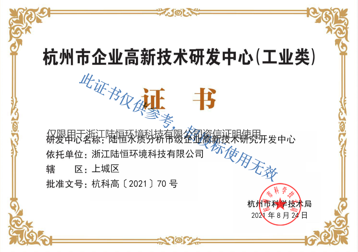陆恒依托浙江大学科研技术,在上城区科技园建立了1000多平的省市级研发中心和多功能体验展厅,研发出高精度水质分析仪器、实验室水质检测仪、多参数水质监测仪物联网在线监测设备、快速诊断试剂、试纸等百余款产品,且大部分产品已取得认证,陆恒拥有几十项自主知识产权专利及国家高新技术企业荣誉称号,是国内水质快速监测的先行者。